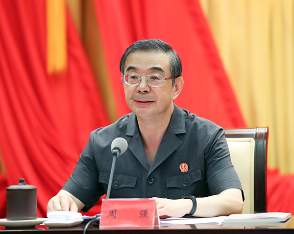 周强从世界民法的发展历史和新中国民法的法典化历程两个维度阐述了民法典颁布实施的历史背景和时代意义,指出民法典是新时代中国特色社会主义法治建设的重大标志性成果,是新时代党和国家各项事业发展的助推器和重要法治保障,对于全面推进依法治国、促进国家治理体系和治理能力现代化具有重要意义。民法典的颁布实施,标志着中国特色社会主义法律体系日臻完善,是中国特色社会主义制度更加成熟、更加定型的重要体现,充分展现了制度建设成果和制度自信,为人类法治文明进步贡献了中国智慧和中国方案。各级法院要切实把思想和行动统一到习近平总书记关于贯彻实施民法典的重要讲话精神上来,增强“四个意识”、坚定“四个自信”、做到“两个维护”,不断增强学习贯彻实施民法典的自觉性、责任感、使命感。