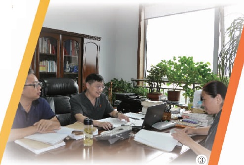 图③为2019年9月9日,作者(左一)与法官一起讨论案情。 周宁宁 摄