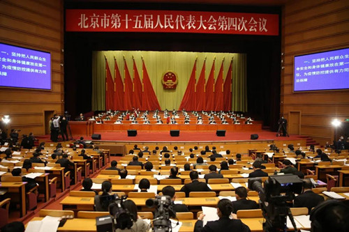 1月25日上午,在北京市第十五届人民代表大会第四次会议上,北京市高级人民法院院长寇昉向大会报告工作。
