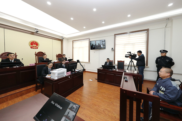 合议庭到监狱讯问张建国。朱丹钰 摄