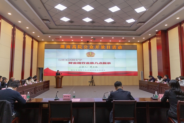 湖南法院网讯 12月4日,在第七个“国家宪法日”,湖南高院举行公众开放日活动,邀请了湖南湘江新区金融发展服务中心、金融企业、律师代表等共14人走进法院,零距离感受法院的日常工作。