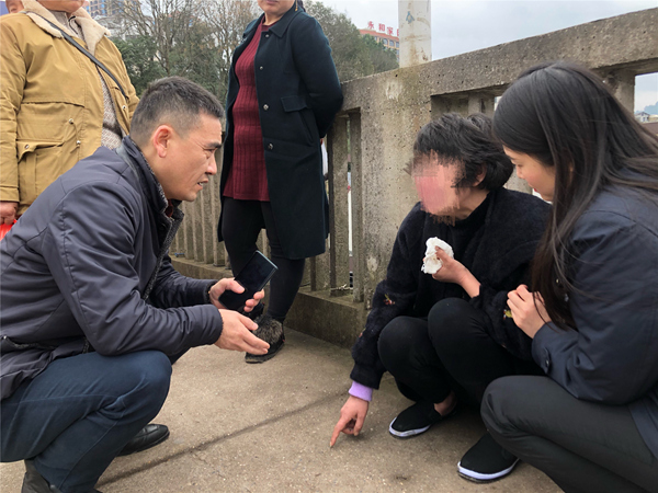 湖南法院网讯 “快停车,救人!”桑植县人民法院法官陈勇喊到,法警高伟立即停车,在陈勇的带领下与随行人员一起将一名轻生女子救下。近日,桑植法院四名干警在去利福塔镇凤栖村办案路上,途经梅家山桥上时,发现一名女子坐上大桥护栏,抱着路灯杆,面对着河坐着,有轻生迹象。见此情景,陈勇马上和其他干警下车小心走到女子身后,找准时机,将其抱下护栏,坐在安全地面。该女子浑身散发着酒味,情绪激动,一直试图挣脱,不停抽泣,嘴里反复说着:“不要管我,反正没人要了,让我去死......”陈勇一边劝说,稳定其情绪,一边让随行干警注意疏散人群,避免造成交通拥堵。