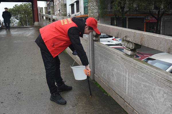 活动中,志愿者们分为3个小组,带着钳子、垃圾桶等各种工具深入湄水河风光带、风雨桥,清理垃圾杂物。他们有的清理小广告,有的捡拾绿化带垃圾,有的清理道路上的杂物,有的清理灌木丛中的塑料袋、花坛中的杂草、纸屑,齐心协力,不怕苦、不怕累,个个干劲十足。经过两个多小时的努力,打扫区域内的环境卫生和路边脏、乱场所焕然一新,路边行人也都向志愿者们投来了赞许的目光。