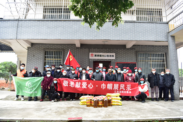 湖南法院网讯 3月8日,春意浓浓,乍暖还寒,江永县人民法院组织20余名女干警赴潇浦镇允山敬老院,开展“敬老献爱心 巾帼展风采”暨“学雷锋、践初心、树新风”志愿服务活动,以一种特殊的方式庆祝“三八”国际妇女节。