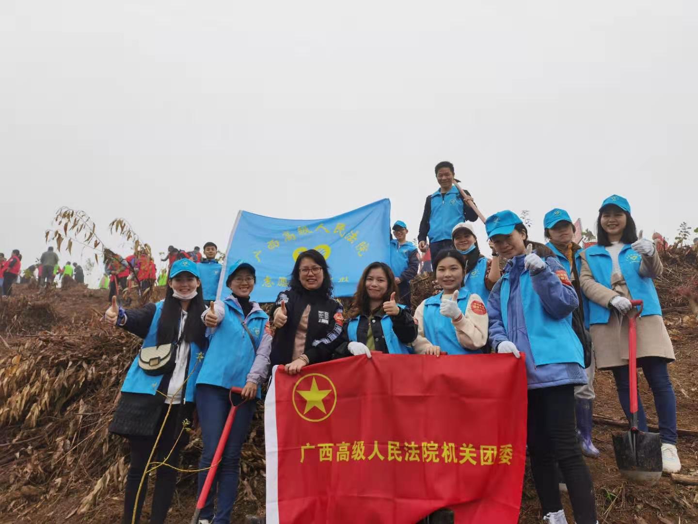 3月12日,在这个春意盎然的植树节,自治区高院机关团委积极开展“学党史,迎建党百年”生态文明实践活动,组织青年干警到广西高峰森林公园参与区直机关“绿动青春·植梦八桂”义务植树活动。