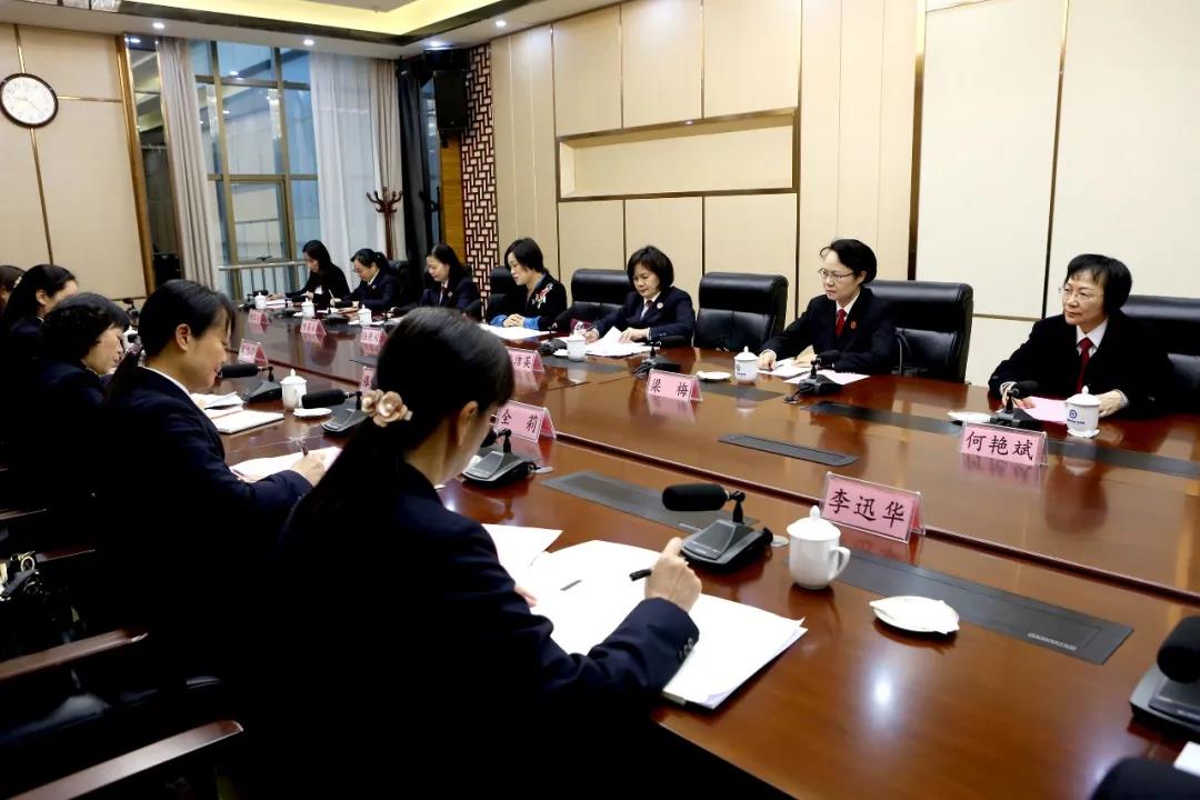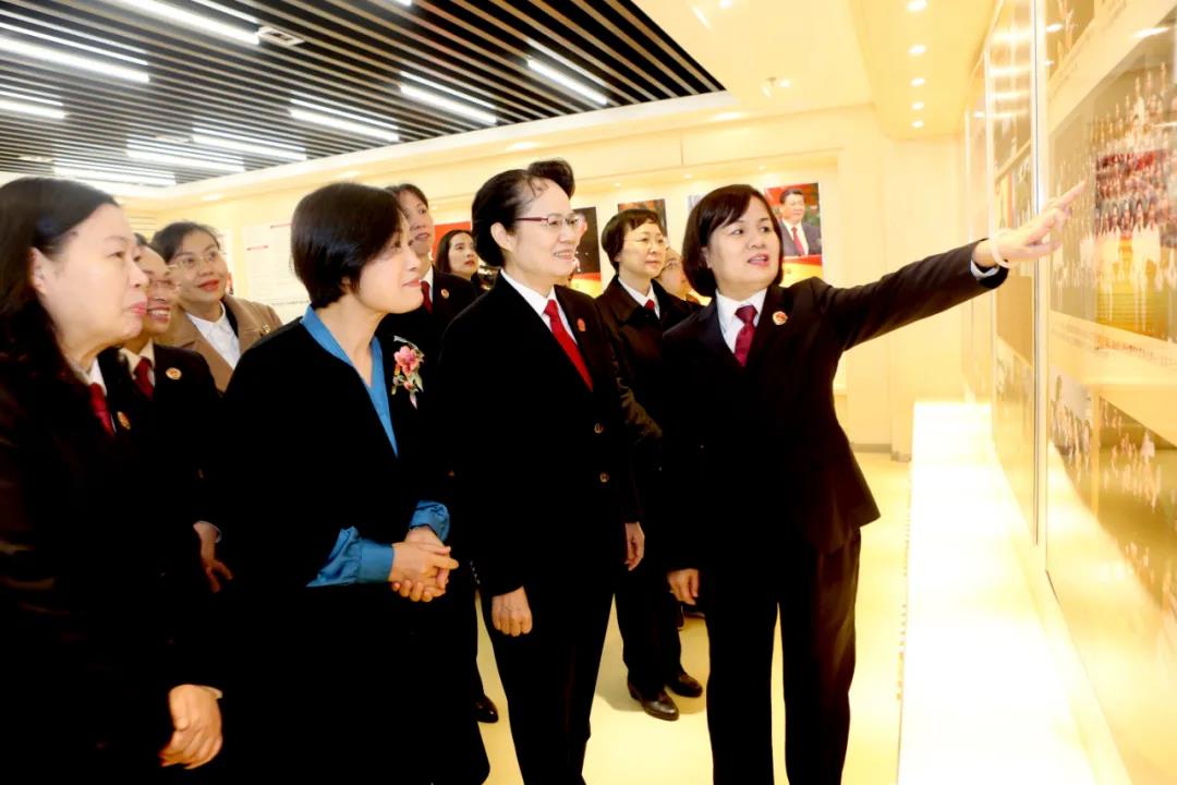 梁梅一行先后参观了国家检察官学院广西分院综合教学楼,观看了自治区人民检察院院史展览,与自治区妇联党组成员、副主席伍艳娟,自治区人民检察院党组成员、政治部主任陈洁英,自治区高院审委会专职委员、广西女法官协会副会长何艳斌及有关单位负责同志进行座谈,就扎实开展好党史学习教育、加强良性互动推进法律职业共同体建设、为广西法律工作高质量发展贡献巾帼力量等方面进行交流讨论。