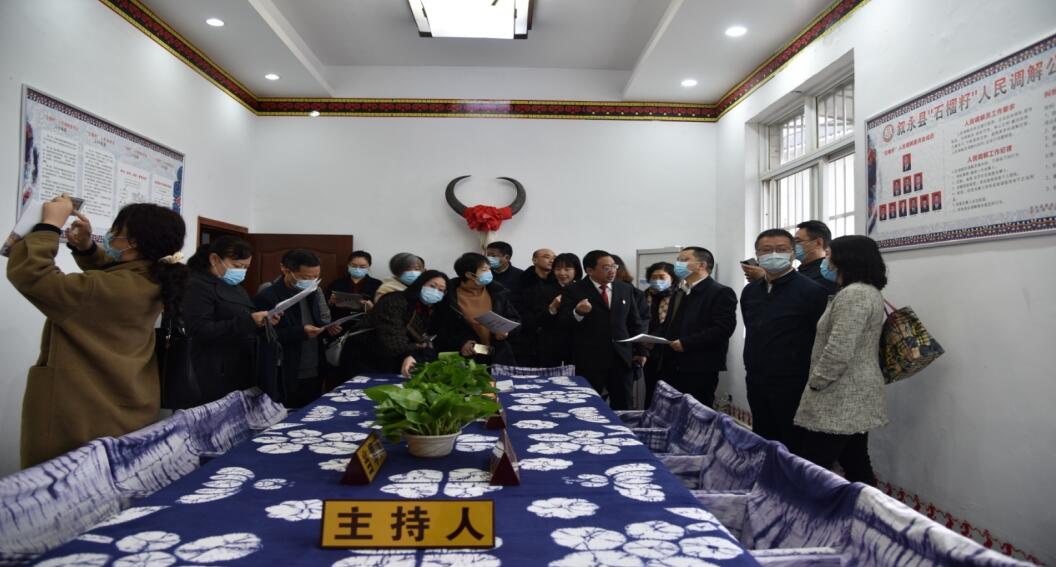 参会人员实地考察了叙永县人民法院摩尼人民法庭及摩尼镇联盟村“石榴籽”调解工作室,现场观摩了当地正在进行的少数民族调解工作,随后在叙永县“石榴籽”人民调解委员会所在地摩尼镇联盟村召开了座谈会。