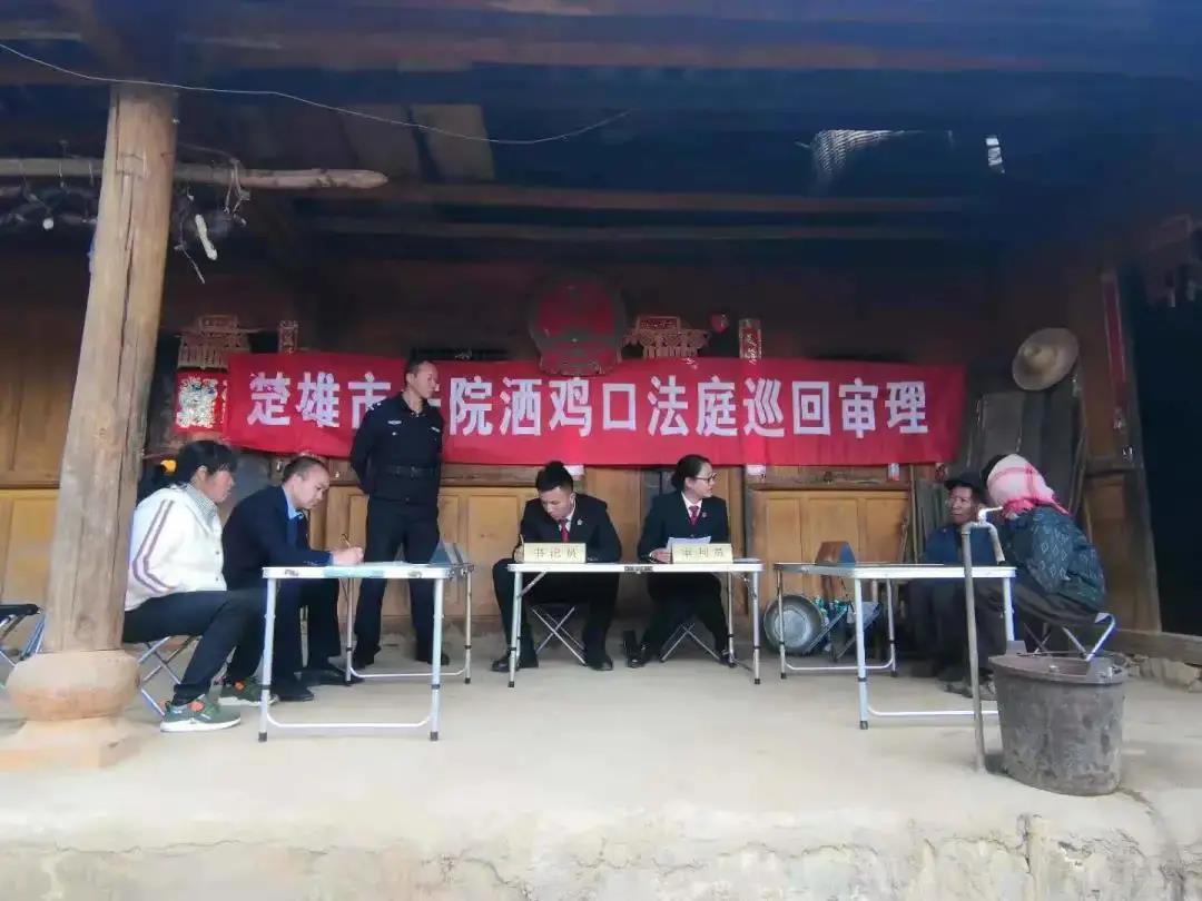 楚雄市人民法院受理了段某某起诉他人拖欠工钱的三件民事诉讼,因考虑到当事人所在的西舍路镇路途遥远,为方便当事人参与诉讼,承办法庭洒鸡口法庭到西舍路镇巡回审理。“哪里有需要,我们就到哪开庭,能开车到的地方还不算远,走路去的时候也常有”。洒鸡口法庭的法官这样说。大山深处、农家小院、田间地头,为了便民利民,无论行车还是徒步,洒鸡口法庭的工作人员带上国徽整装出发,巡回审判一直是洒鸡口法庭的工作常态。
