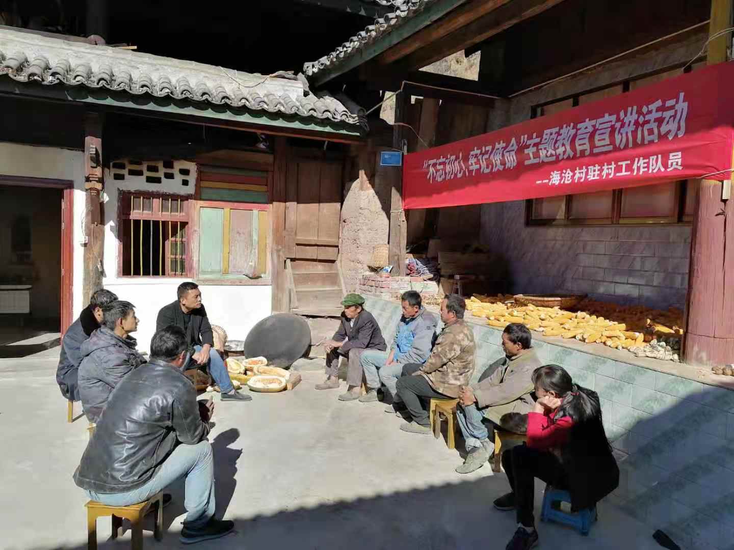 深入开展“不忘初心,牢记使命”主题教育活动,送学帮教切实引导人民群众“听党话,感党恩”。云龙县法院按照县委的安排在院机关开展“不忘初心、牢记使命”主题教育的基础上,深入挂钩村指导配合驻村工作队开展主题教育活动,驻村工作队在法院干警的配合成立宣讲队。扎实开展主题教育,宣讲队深入学习贯彻习近平新时代中国特色社会主义思想,严格对照习近平新时代中国特色社会主义思想和党中央决策部署等六个方面,进行自我查摆、全面检视,按照县委要求坚持边学边改,把“改”字贯穿始终,并紧密结合海沧村实际,高质量开展主题教育工作。宣讲队组织大坪、树苗、双丰地、新寨四个支部的书记在村召开主题教育动员部署会,分别到组,到户以及到田间地头开展现场宣讲,对年老体弱党员采取送学上门的方式进行宣讲,召开宣讲成果交流会,讲授专题党课,组织党员重温入党誓词,深入学习新党章、学习《中国共产党廉洁自律准则》、《中国共产党纪律处分条例》等党纪条规,引导党员充分发挥先锋模范作用。