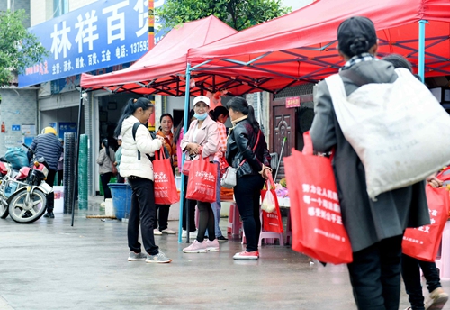 为扩大覆盖面,除定点宣传外,干警们还到沿街摊位、商铺进行宣传。一时间,一个装有民法典宣传材料的红色宣传手提袋,成了人尽皆有的“爆款”,带着民法典知识逛街,也成了腰街乡赶集日的时兴姿态。