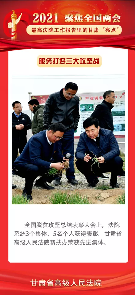 甘肃法院的亮点工作被写入最高人民法院工作报告,是对甘肃法院工作的充分肯定,极大地鼓舞了全省法院干警的士气,激发了法官们干事创业的热情,坚定了全省法院继续拼搏的决心。