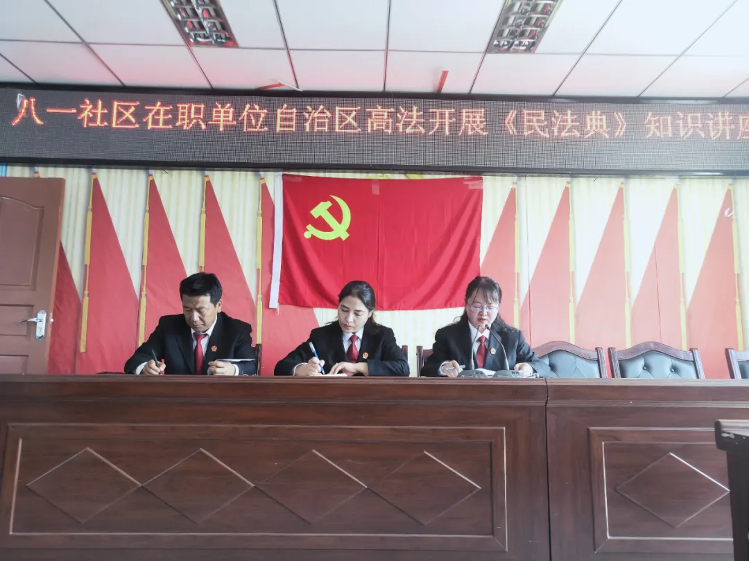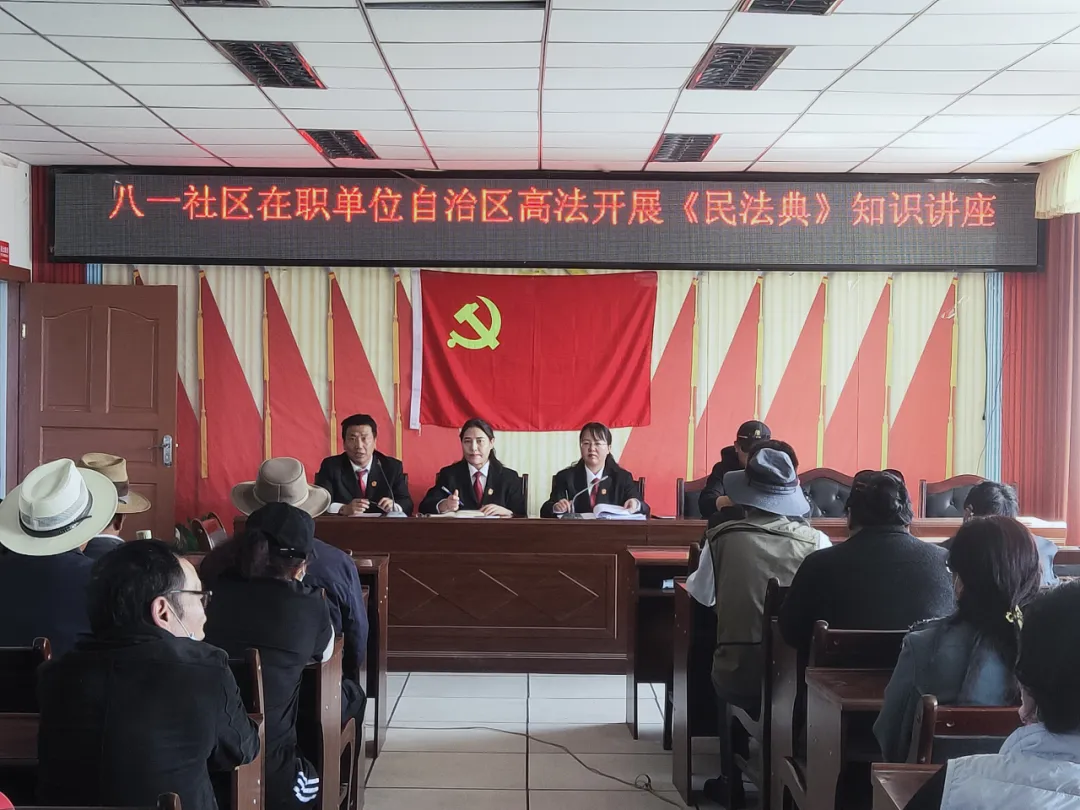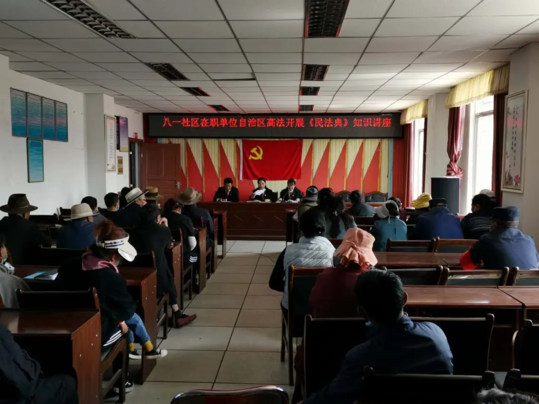 西藏自治区高级人民法院第十支部与第十二支部按照高院机关党委的部署,认真贯彻执行《中国共产党支部工作条例(试行)》,认真落实支部主题党日制度。两个支部经过前期筹划,拟定主题党日活动方案,在征求社区居民听课需求的基础上精心备课,走进社区,对全国两会精神及民法典进行宣讲。会议由第十二支部宣传委员桑吉卓玛协调召集,第十支部廉政监督员洛桑尼玛主持兼翻译,由第十二支部书记郑丽宣讲。