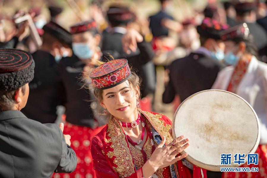 在新疆塔什库尔干塔吉克自治县,演员在端午节群众性文化体育活动现场表演(2020年6月25日摄)。新华社记者胡虎虎摄