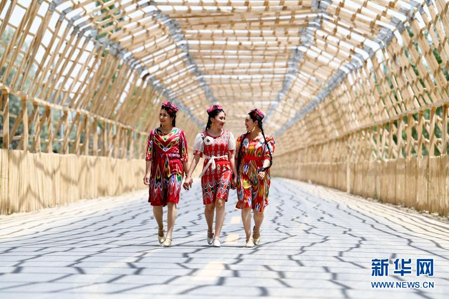 在新疆和田地区于田县阿热勒乡阿德让村,演员在参加风情节活动(2020年5月20日摄)。新华社记者沙达提摄