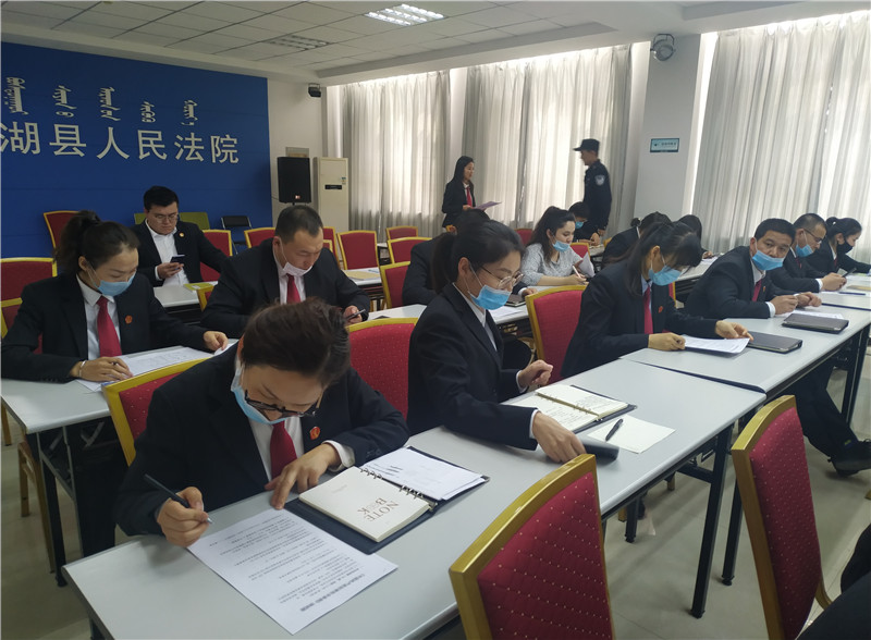 博湖县人民法院党组书记周德海表示,作为政法干警必须挺纪在前,绝对服从党的领导,任何时候都要党走在前,如此才能为我国法治建设提供坚实后盾。