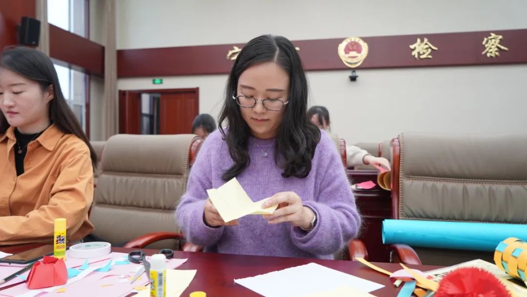 在第111个国际劳动妇女节、我国第98个妇女节来临之际,为推进我院检察文化建设和业务工作建设,丰富和活跃干警文化生活,激发广大干警顽强拼搏、积极进取精神,3月5日上午,我院组织开展国际劳动妇女节“三个一”系列活动。通过折剪一份手工、送上一束鲜花和留下一句检察寄语三项活动,对女干警们送上节日的慰问和祝福,同时丰富了检察文化生活,增强了干警凝聚力。