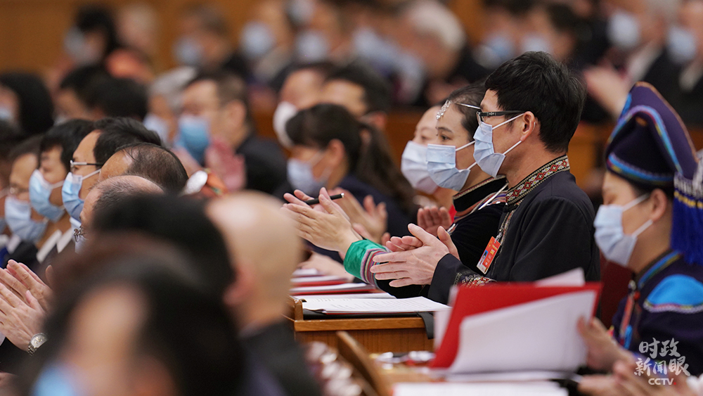 △闭幕会上,每项决议草案和决定草案表决通过后,现场都会响起热烈掌声。(总台国广记者李晋拍摄)