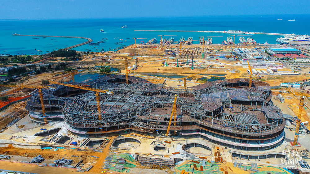 △2021年3月5日,建设中的海口国际免税城项目,未来将成为海口新地标。