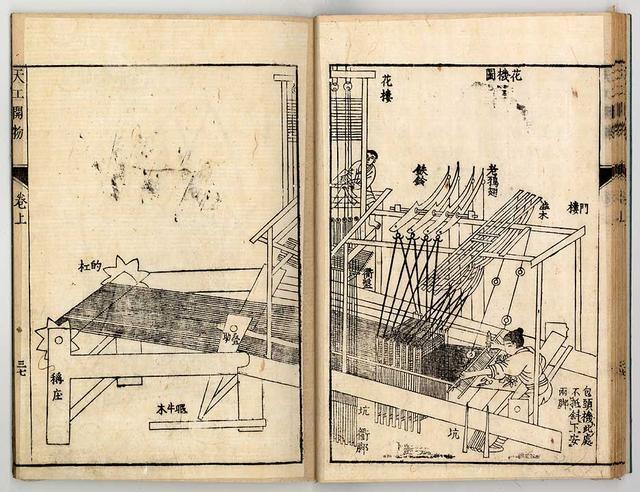 书中所附123张配图,细节栩栩如生。一共出现了二百七十多名劳动人民的形象:有耕耘田地的农民,有织制彩锦的工匠,有航行江海的船夫,还有演习和作战中的士兵。用这么多的画面来表现劳动生产和劳动者,以至于我们现在看到这些图,仿佛就能真的明白当时工艺达到什么水准。