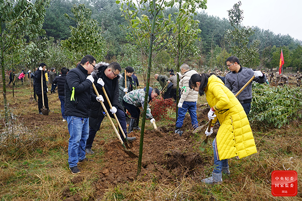 清风徐徐扬正气,廉意浓浓春满山。在植树节来临之际,河南省息县纪委监委组织开展义务植树活动,一棵棵“廉洁树”昂然挺立,一片片“廉洁林”沐浴在阳光中,提醒广大纪检监察干部“树人如同树木”,要严守规矩、踏实做人、筑牢防线、正直向上,扎深扎牢勤廉精神。(河南省信阳市息县纪委监委 杨玉 摄)
