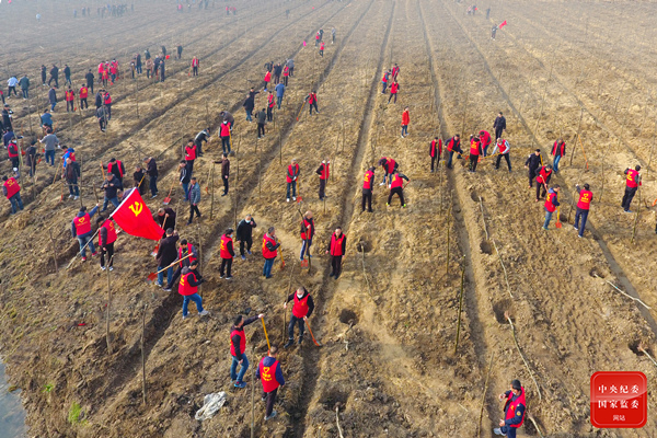 安徽省固镇县广大党员干部来到城关镇大楼村境内浍河景观带治理项目区,积极参与植树活动,用实际行动践行“既要金山银山,也要绿水青山”的理念,倡导生态文明新风尚,为建设生态绿色固镇贡献力量。(安徽省蚌埠市固镇县纪委监委 梁冰 摄)