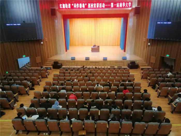 近日,衡阳市蒸湘区“同伴禁毒”巡回宣讲活动第一站走进南华大学,在南华大学红湘校区学术报告厅对大一学生举行了一场别开生面的禁毒宣讲活动。此次活动以禁毒宣传进校园为轴线,旨在提升高校学子的防毒拒毒意识与能力。