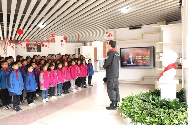 民警和同学们一起学唱《学习雷锋好榜样》、《我们是共产主义接班人》等歌曲,然后由尖山湖快警平台负责人柳林啸讲述了雷锋故事。通过宣讲雷锋同志的优秀事迹,教育同学们应如何热爱爱国、爱党、爱家,传递了正能量,延续了红色精神。最后给同学们进行安全教育,讲述安全知识。
