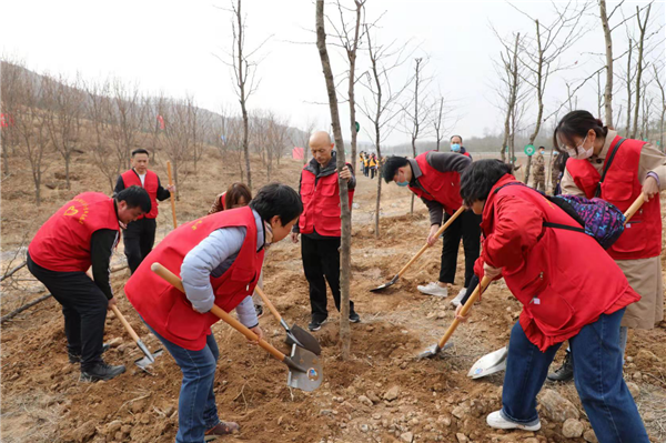 天朗气清,春意盎然,正是适合植树的好时节。3月12日上午,在太原市阳曲县“省城青年义务植树”基地,大家挥锹铲土、培土围堰、提水浇灌……植树现场一片繁忙景象。大家种下的油松、槐树等30余株树苗,在和煦的春风中,挺拔的树苗错落有致,初绽的枝叶格外清新。
