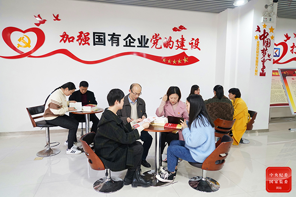 重庆市开州区纪委监委结合“以案四说”警示教育,在国有企业中创新开展全会精神“微宣讲”,采取学习沙龙、党日活动等形式促进国企党员职工深化对全会精神的理解。(重庆市开州区纪委监委 廖银 摄)