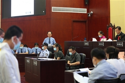 长沙市芙蓉区检察院党组书记、检察长王均全出庭尹某等人组织卖淫案。通讯员 刘向东 摄