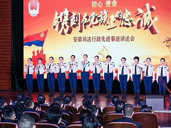 3月17日下午,省司法厅在合肥举办“初心·使命 镌刻在党旗上的忠诚——安徽司法行政先进事迹巡回讲述会”。省政法队伍教育整顿驻司法厅指导组组长许苏跃、副组长郑明武、江良以及指导组其他人员出席讲述会。省司法厅党委书记、厅长姜明,党委委员、政治部主任李军,省监狱管理局、省戒毒管理局、安徽警官职业学院主要负责人以及在肥监狱戒毒所民警代表参加讲述会。