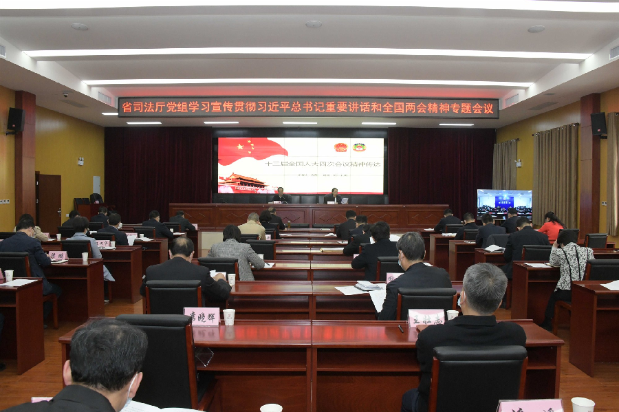 会议指出,今年的全国两会是在“两个一百年”奋斗目标历史交汇点上召开的一次十分重要的会议。全省司法行政系统要把学习宣传贯彻全国两会精神特别是习近平总书记重要讲话精神作为当前一项重要政治任务,全面把握精神实质,深刻理解核心要义,自觉在思想上政治上行动上同以习近平同志为核心的党中央保持高度一致。要胸怀“国之大者”,深刻认识进入新发展阶段、贯彻新发展理念、构建新发展格局的新形势新任务,准确把握推进高质量发展、创造高品质生活、实现高效能治理的新目标新要求,充分发挥司法行政职能作用,为全面建设社会主义现代化国家提供法治保障、贡献法治力量。要把学习贯彻全国两会精神与学习贯彻党的十九届五中全会和习近平总书记来陕考察重要讲话精神以及习近平法治思想结合起来,与开展党史学习教育、政法队伍教育整顿等年度重点工作结合起来,对标“十四五”规划和2035年远景目标纲要,对照今年工作任务要求,主动担当作为,以昂扬向上的精神状态助推“十四五”开好局、起好步。