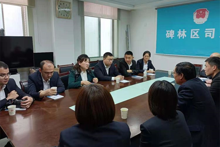3月16日,新疆维吾尔自治区喀什市公证处一行6人来西安市碑林区公证处进行参观交流,莲湖区公证处主任及相关人员一同参加。