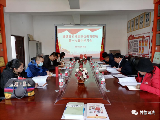3月16日,甘德县司法局开展队伍整顿教育第一次集中学习会议,会上局领导班子成员、各科室负责同志依次领学了《中华人民共和国公职人员政务处分法》、《中国共产党廉洁自律准则》、《中国共产党党内监督条例》、《中国共产党问责条例》、《中国共产党纪律处分条例》、《中国共产党政法工作条例》等党内法规。