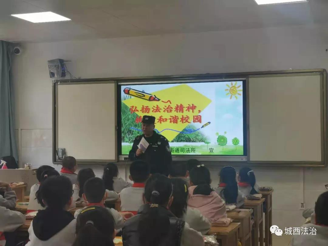 开学伊始,为增强青少年学生的法治观念,有效预防和减少青少年违法犯罪,针对当前未成年人犯罪低龄化趋势、多样化发展,结合发生在日常学习、生活中未成年人犯罪的典型案例。3月15日下午,胜利路司法所在五四小学开展了法治进校园普法宣传教育活动,活动特邀胜利路派出所民警作专题法治讲座。