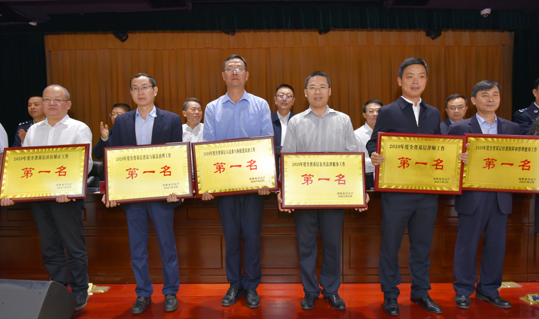 会上,还传达学习了中央政法工作会议、全国司法厅(局)长会议、省委政法工作会议精神,宣读了《海南省司法厅关于通报表扬2020年度基层司法行政业务工作先进单位的决定》,并对司法行政综合业务前五名、单项业务第一名的市县司法局和2020年省属监所领导班子考核为“好”班子的监所进行了表彰。