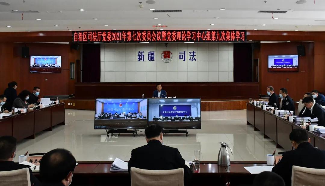 会议强调,加强组织领导,狠抓贯彻落实。坚持把学习贯彻全国“两会”精神,与学习贯彻党的十九大和十九届二中、三中、四中、五中全会精神结合起来,与学习贯彻中央全面依法治国工作会议、全国脱贫攻坚总结表彰大会精神结合起来,与学习贯彻第三次中央新疆工作座谈会精神结合起来,与开展党史学习教育、政法队伍教育整顿结合起来,以全区司法行政工作高质量发展的优异成绩庆祝建党100周年。