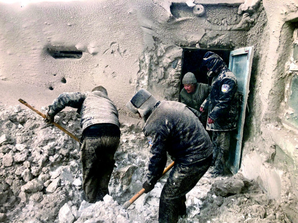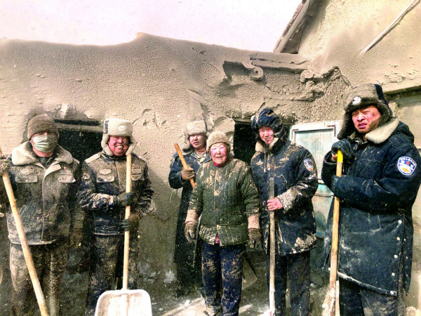 他们从风沙暴雪中奔来,救出被困老人后,一个个变身为“雕塑”。3月15日中午,内蒙古新巴尔虎右边境管理大队阿尔山边境派出所的民警顶风冒雪救出被困孤寡老人后,身上满是积雪和沙尘的混合物,宛若“雕塑”。 当天,新巴尔虎右旗遭受突如其来的沙尘风雪极端天气。阿尔山边境派出所民警接到群众报警求助,居住在草原深处的71岁孤寡老人张金英,房屋被积雪堵住,困在家中已达6小时。无法出门取柴火,保暖成了难题,零下20度的低温让老人处于冻伤的险境中。当时天气恶劣,十级大风卷着黄沙和雪花将天地之间染成了土黄色,能见度不足10米,救援民警没有丝毫犹豫,立即驱车前往老人家中。由于张金英家处于窝风地带,房门早已被厚厚的积雪堵得严严实实。参与救援的6位民警顶着寒风、迎着雪粒和黄沙,使用铁锹、小推车等工具,一点一点铲除积雪。经过2个多小时奋战,房门终于打开。