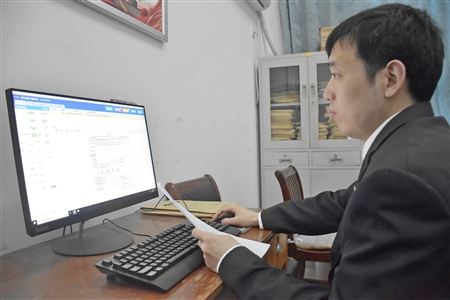 2021年2月6日,光山县人民法院执行干警在执行流程管理系统中对案件进行节点操作。赵 波 摄