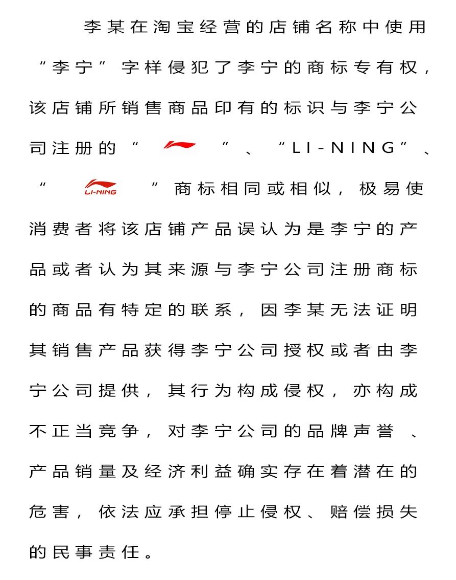 法院经审理后认为,李宁公司依法取得的注册商标受法律保护,他人未经许可,不得在同类商品上使用与李宁已注册商标相同或近似的商标。