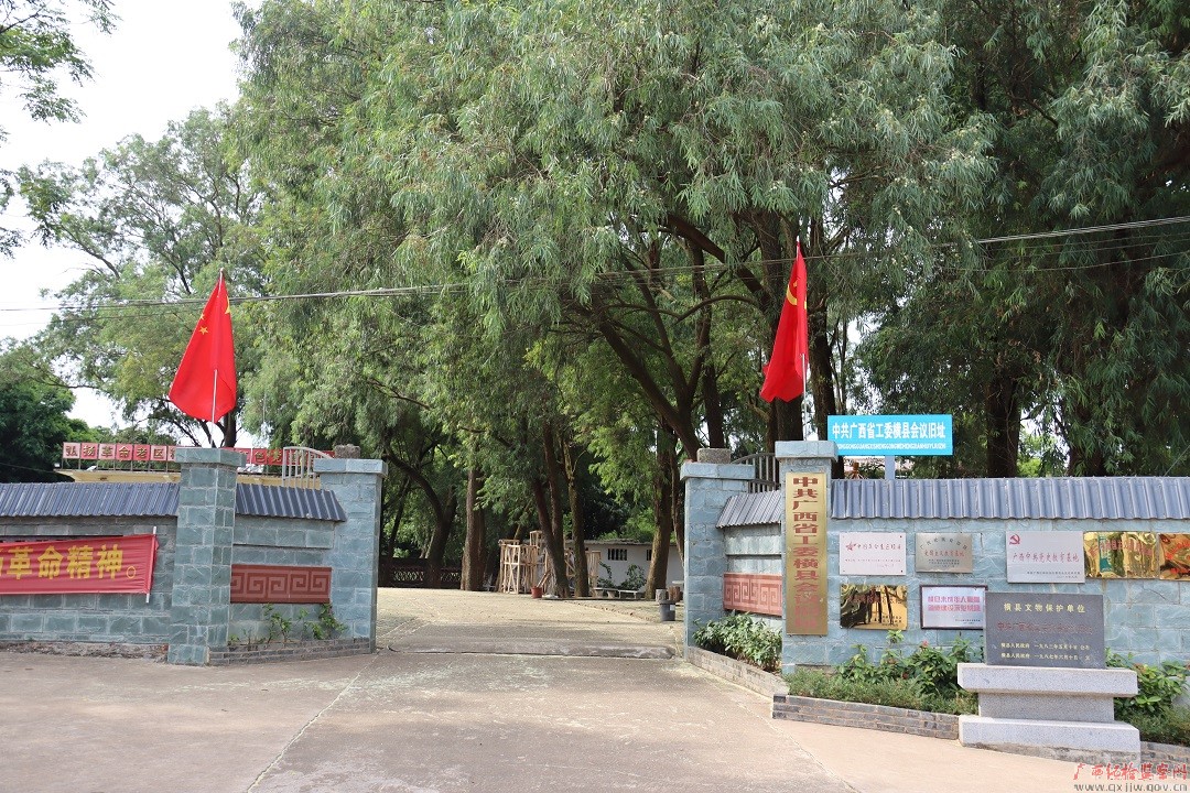 从横县陶圩镇政府所在地,沿着水泥村道,穿过一片甘蔗林,只需十来分钟,便来到六秀村——广西省工委横县会议旧址所在地。这里翠绿的桉树顶天立地,鲜艳的五星红旗分立大门两侧,格外醒目。当年革命先辈召开会议的小屋保存完好,提醒人们铭记着那一段令人难忘的烽火岁月。