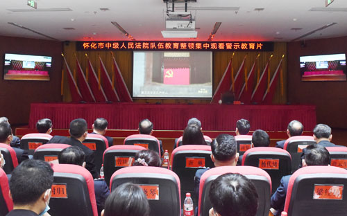 湖南法院网讯 为扎实开展队伍教育整顿,深入推进学习教育环节中的警示教育,3月16日晚,怀化市中级人民法院组织观看警示教育片《叩问初心——贪欲之害》。中院党组书记、院长李知文,中院全体院领导、副处级以上干部及全体干警观看。