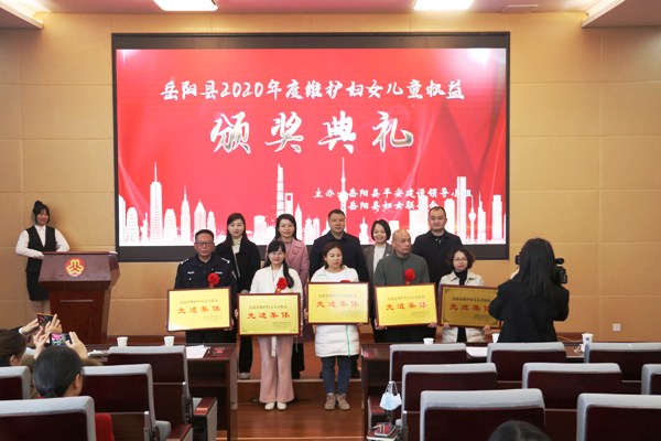 岳阳县2020年度维护妇女儿童权益颁奖典礼现场
