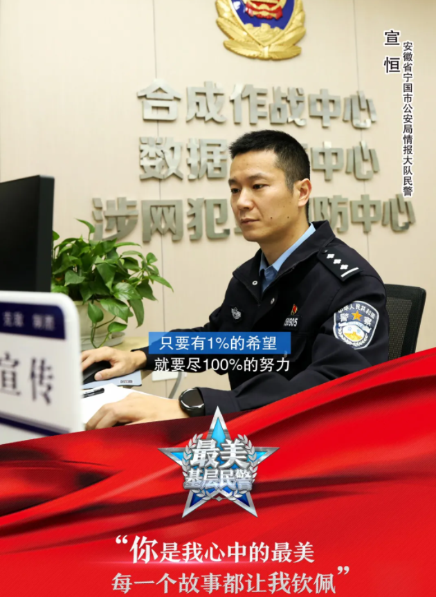 宣恒,安徽省宁国市公安局情报大队民警,刚刚荣评“2020全国最美基层民警”。