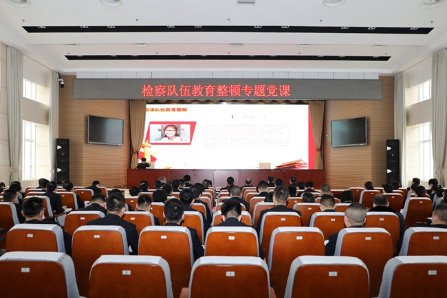 为有力推进教育整顿,筑牢思想基础,根据我院教育整顿工作安排,3月19日,院党组书记、检察长戴红心为全院干警讲授检察队伍教育整顿专题党课。