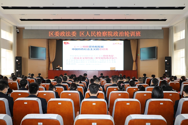 魏晓波主任以《全面建设社会主义现代化国家新征程的科学指南——深入学习习近平新时代中国特色社会主义思想基本问题》为题,从习近平新时代中国特色社会主义思想的核心内容、主题、思想精髓、实践要求四方面展开深入解读,列举几代中国共产党人在各个历史时期不懈探索奋斗的成果、我国近年来取得的各项成就,引导全体干警全面认识、准确把握习近平新时代中国特色社会主义思想。