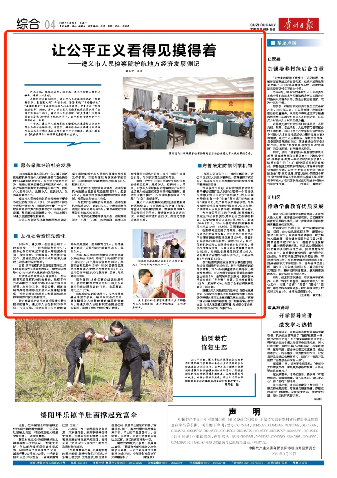 贵州日报 | 让公平正义看得见摸得着——遵义市人民检察院护航地方经济发展侧记