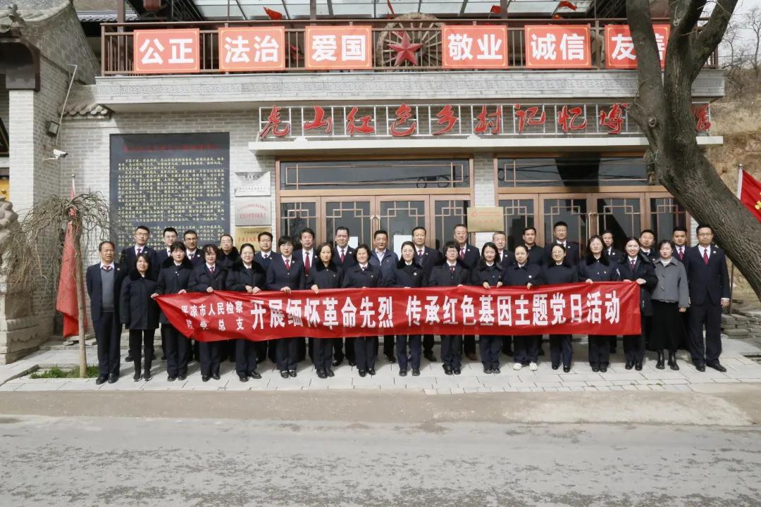 3月19日,平凉市检察院党总支组织全体党员干警赴“虎山红色乡村记忆”博物馆,开展“缅怀革命先烈 传承红色基因”主题党日活动。全省政法队伍教育整顿第七驻点指导组检察院现场指导专班负责人卢有礼及成员关晓霞全程参加活动。
