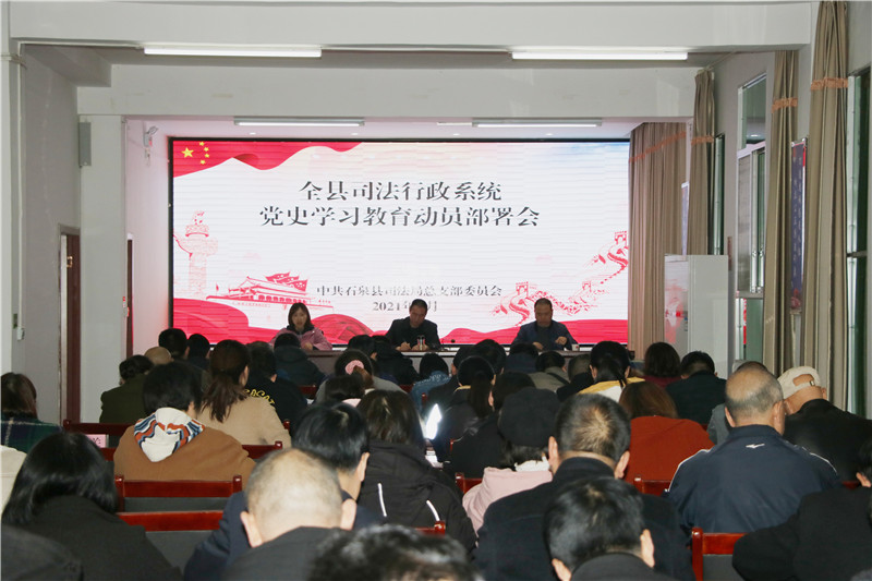 近日,安康市石泉县召开司法行政系统党史学习教育动员部署会议,学习传达了习近平总书记在当时学习教育动员大会上的重要讲话精神,传达中、省、市、县党史学习教育动员部署会会议精神,对全系统开展党史学习教育进行动员部署。