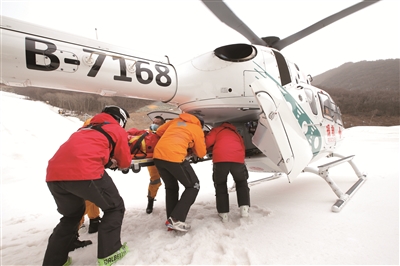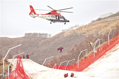 图为北京延庆赛区举行直升机全流程全要素医疗救援实战演练。(图片来源:视觉中国)